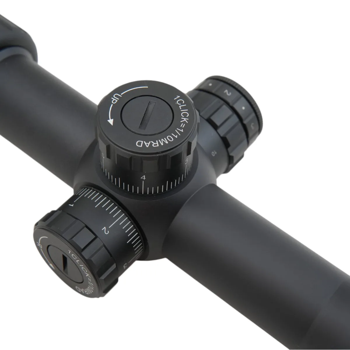 La mira Shilba I6x está diseñada para ofrecer una precisión excepcional en cualquier condición de disparo. Con su retícula B4A y torretas tácticas expuestas ZERO LOCK en Milrad, proporciona ajustes rápidos y seguros para un rendimiento confiable en el campo.