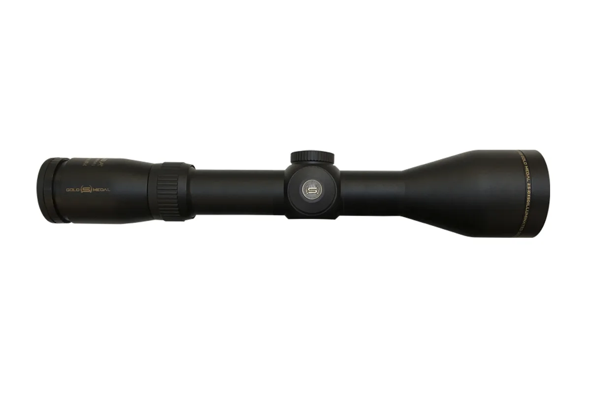 Mira Gold Medal 2.5-10×50. Tubo de 30mm y retículo IRG4 iluminado. Lentes Japan Lenses HR 400 Multicapa y gran campana de 50mm para máxima luz.
