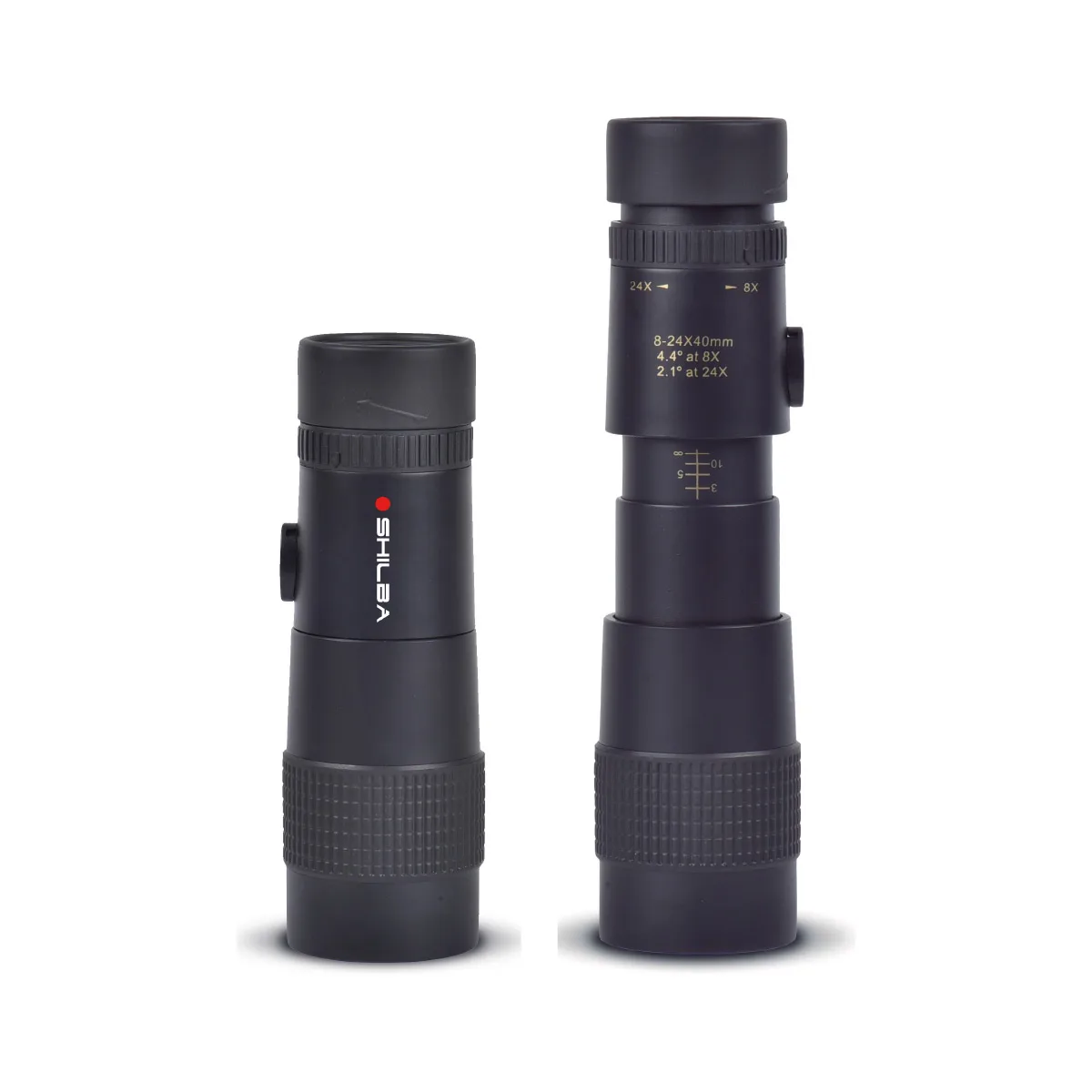 El monocular Shilba 8-24×40 Zoom redefine la portabilidad y potencia. Con un zoom variable de 8x a 24x y un objetivo de 40 mm, ofrece imágenes claras y detalladas en un diseño compacto y ligero. Su óptica «Green Coated» asegura una transmisión de luz óptima.