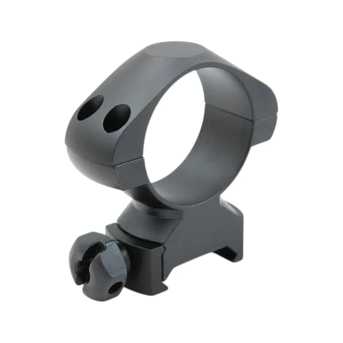 Montaje de acero reforzado ultra resistente, con traba hexagonal. Diseñado para tubos de 30mm sobre riel Weaver. Perfil Alto (High).